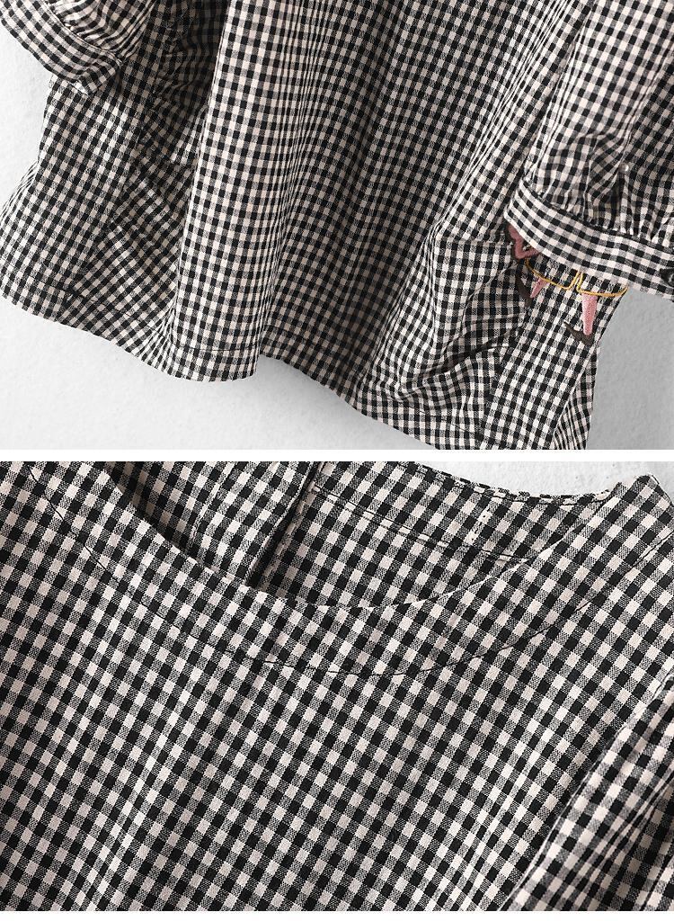 スプリング刺繍格子柄スリーブTシャツ コットン 春物 ✪✪ アイドル ジャケット ブルゾン Tシャツ 長袖 半袖 デニム パンツ ワンピ キャミ オフショル ティアード ジーンズ スーツ ZARA フォーエバー21 GAP H&M WEGO HONEYS MUJI GU UNIQLO dholic babyGAP FOREVER21 Old Navy 春夏秋冬 韓国 K-POP Kpop 韓流 スター 26A8610801800