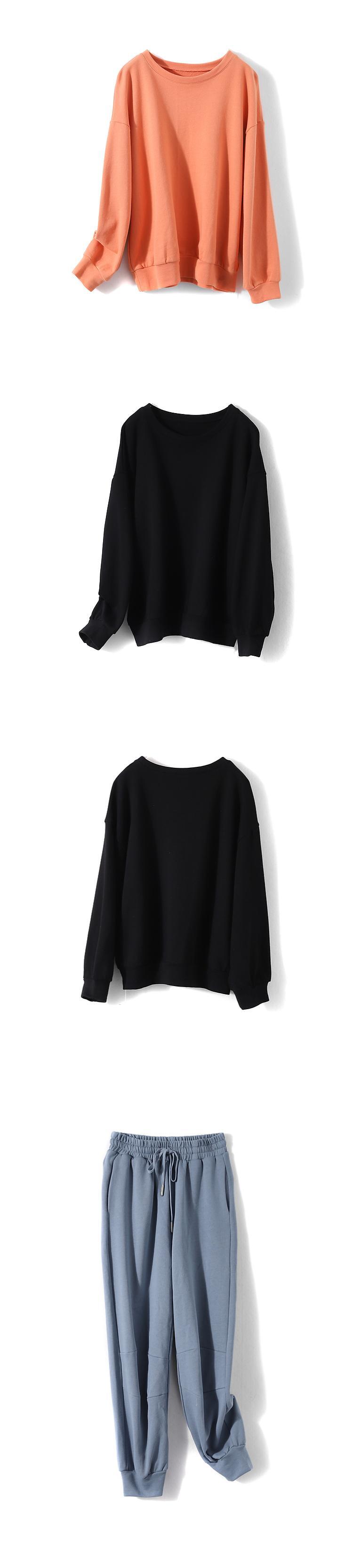 色:ブルー(パンツ),黒いズボン,黒(上),オレンジトップ,オレンジ(ズボン),青(上)