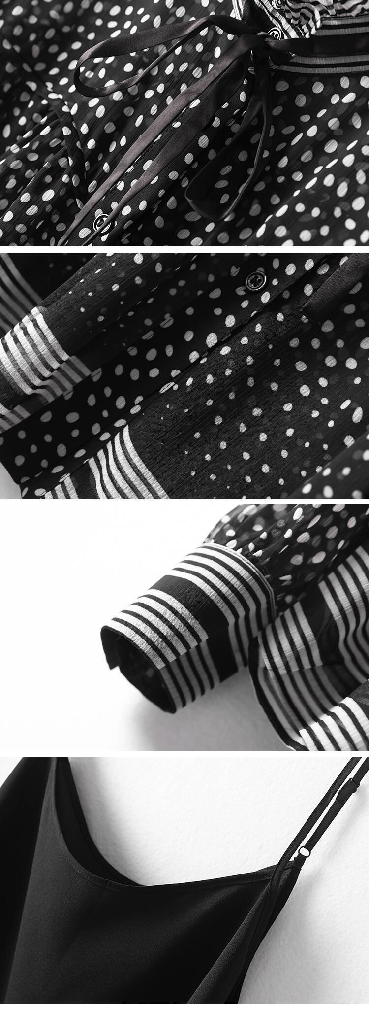 色:ツーピースの黒と白のドット,黒と白の水玉ワンピーストップ,黒